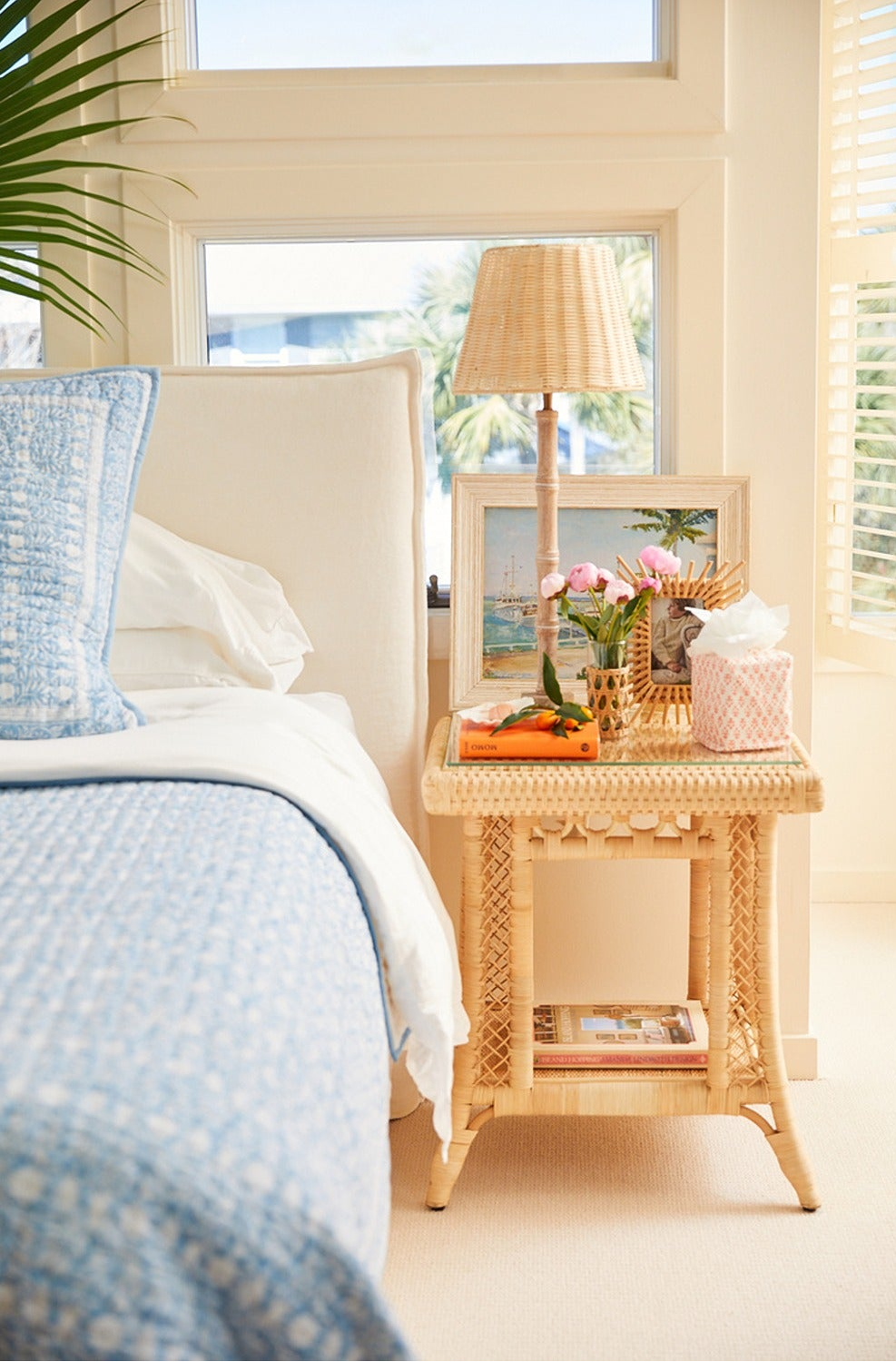 Brass trimmed, caned elongated octagonal mirror