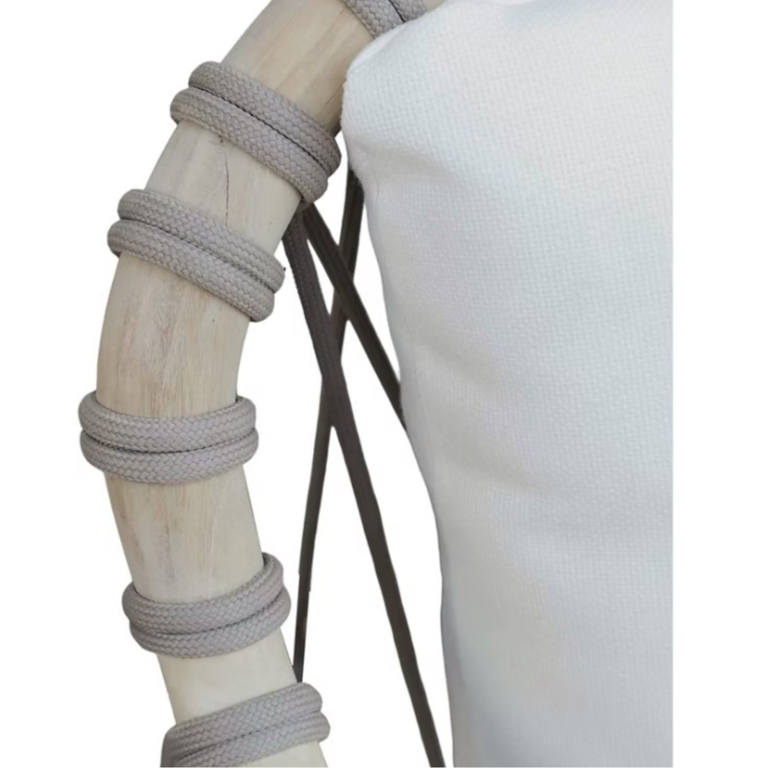 Our Malibu Outdoor sofa is crafted from an exquisite plantation teak wood frame in a reclaimed aged finish, featuring a captivating design with taupe outdoor rope detailing on the back and sides, creating a stunning cross decor pattern.