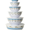 - Trellis and Topiary Mixing Bowls with Lids: Enhance your kitchen with the Trellis and Topiary Mixing Bowls with Lids. This set of six bowls features an elegant blue and white design with soft, multi-colored floral accents, blending style with practicality. 5", 6.5", 7.5", 9", 10.5", 12"