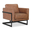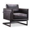 Functional comfort and simplistic modern form combine in this stately silhouette—a sophisticated occasional chair that brings an understated elegance to any living space. The Voss club chair is fully upholstered in top-grain leather with a deeply comfortable seat and an eye-catching semi-cantilevered frame design. Relax, reflect and redefine comfort and style with the straight, clean lines and resounding ease of this statement piece.